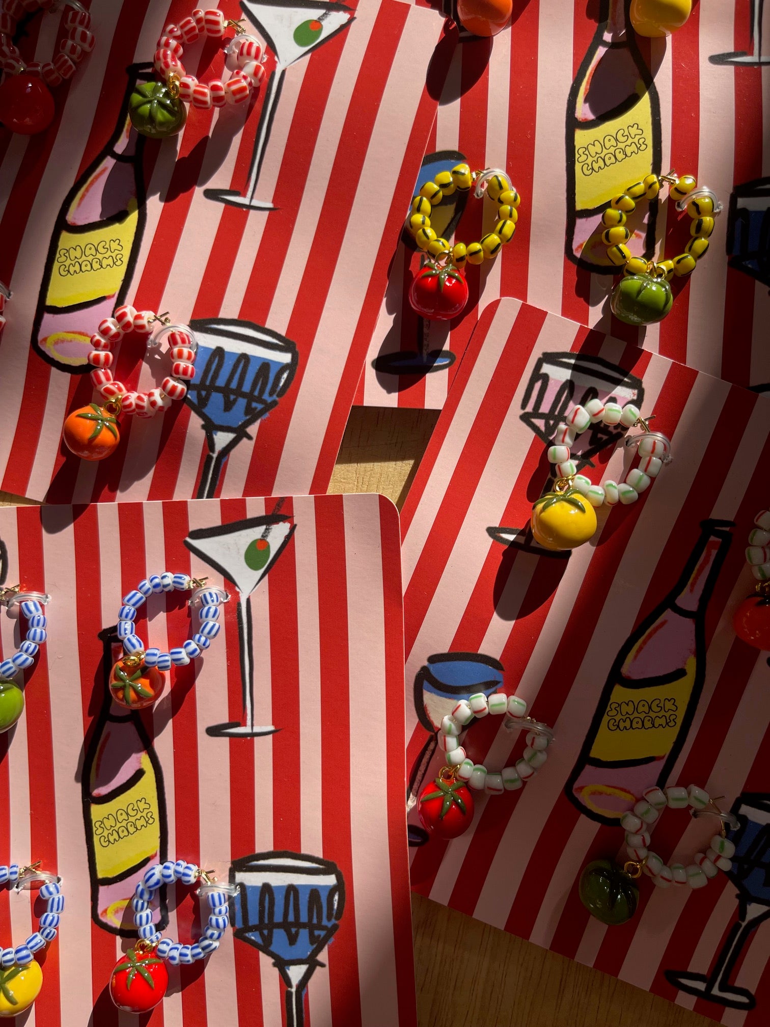 The perfect addition to your tablescape this summer. Each charm features a hand-sculpted tomato and vintage glass beads.